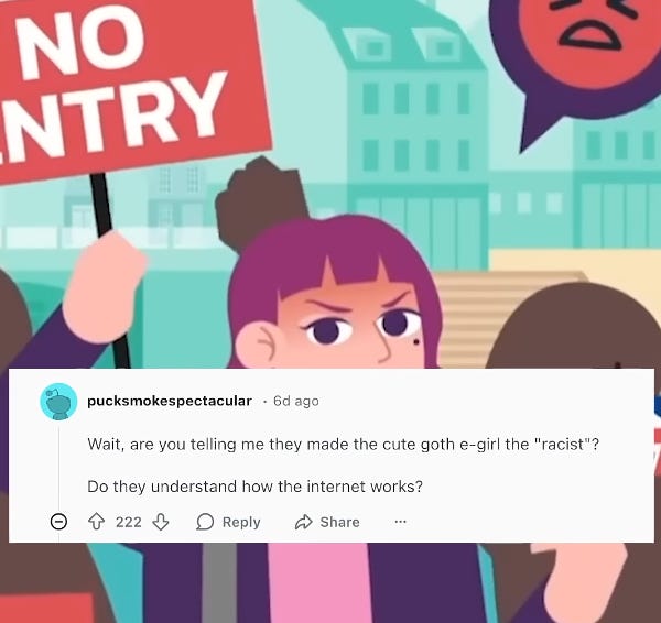 Also, let’s face it (except for in my “fan art”) Amelia looks like a typical woke antifa supporting hipster lefty. And I mean she is - I mean she is certainly woke, that’s her whole stick. Of course she is woke right instead of woke left, but that’s all the same to me - woke is woke. And we could probably talk for days about what exactly woke means and where it comes from and James Lindsay has literally done that.